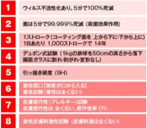 スマホやタブレットだけでなくPCやノートパソコン、ゲーム機などもご利用頂けます。また、それ以外にもキッチンやトイレ、浴槽・浴室、洗面台や鏡のコーティングにも対応しています。また、飲食店経営をされている方などにはお客様同士を遮るアクリル板やガラス製品にもご利用頂けます。